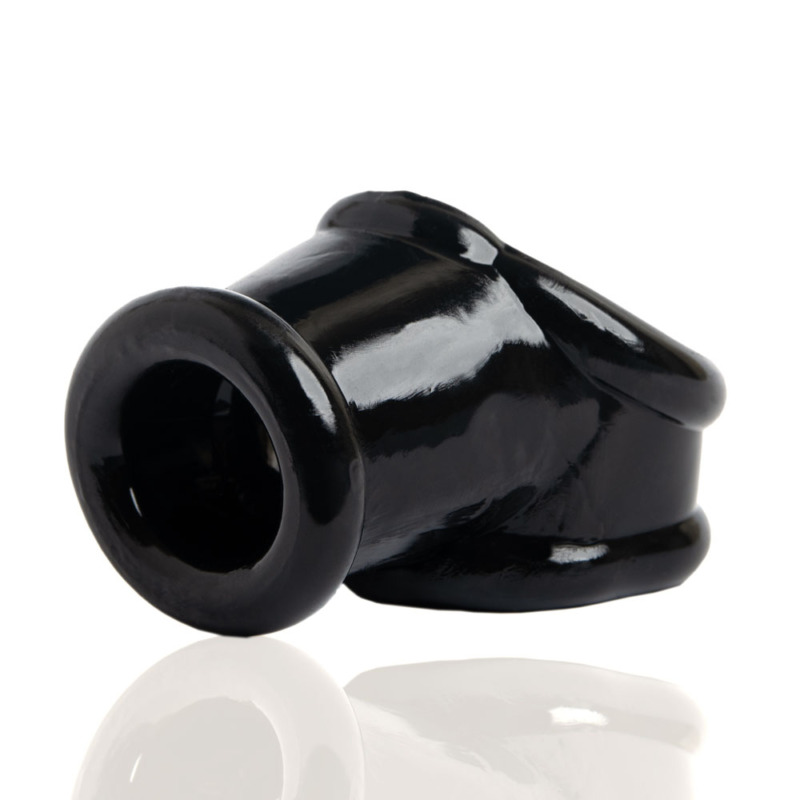 The extended base of the sling keeps your nuts pushed down and away from your bodyit also feels awesome while you jerk or plow some sloppy hole. An inner ring in the stretcher grips your ballbag and keeps your boys from poppin out. — Oxballs