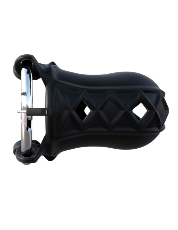 Put your lover on lockdown with the Extreme Silicone Cock Blocker! Fasten the lock, hide the key, and make sure your partner keeps his cock where it belongs! This high-end chastity cage is made from our body-safe, phthalate-free Elite Silicone and is designed for comfortable long-term wear. The chastity device is lightweight, flexible, and breathable, but once the lock is applied, your subject cant get hard no matter how aroused they are! The Extreme Silicone Cock Blocker features a sturdy stainless steel adjustable ring that wraps around your subjects entire package, leaving his shaft locked inside the breathable silicone sleeve. With unparalleled comfort, this ventilated silicone chastity cage is the ultimate chastity device for first-timers and serious fetish enthusiasts alike. Enjoy the thrill of locking your lover up, or relinquish control and hand over the keys! The silicone cage is easy to wash, body-safe, and super hygienic. The vent holes allow you to clean your subjects package while they still wear the cage, and the ring is made from high-grade stainless steel. The silicone sleeve has a small pee-hole to assist urination, and the entire device can be worn under clothing for amazing one-of-a-kind thrills! To install the silicone sleeve onto the metal ring, make sure the metal rings opening is facing upwards and slide both pairs of silicone loops onto each side of the ring. Once youve looped the silicone sleeve onto the steel ring, choose one of the 3 holes and install one of the locks. — Pipedream